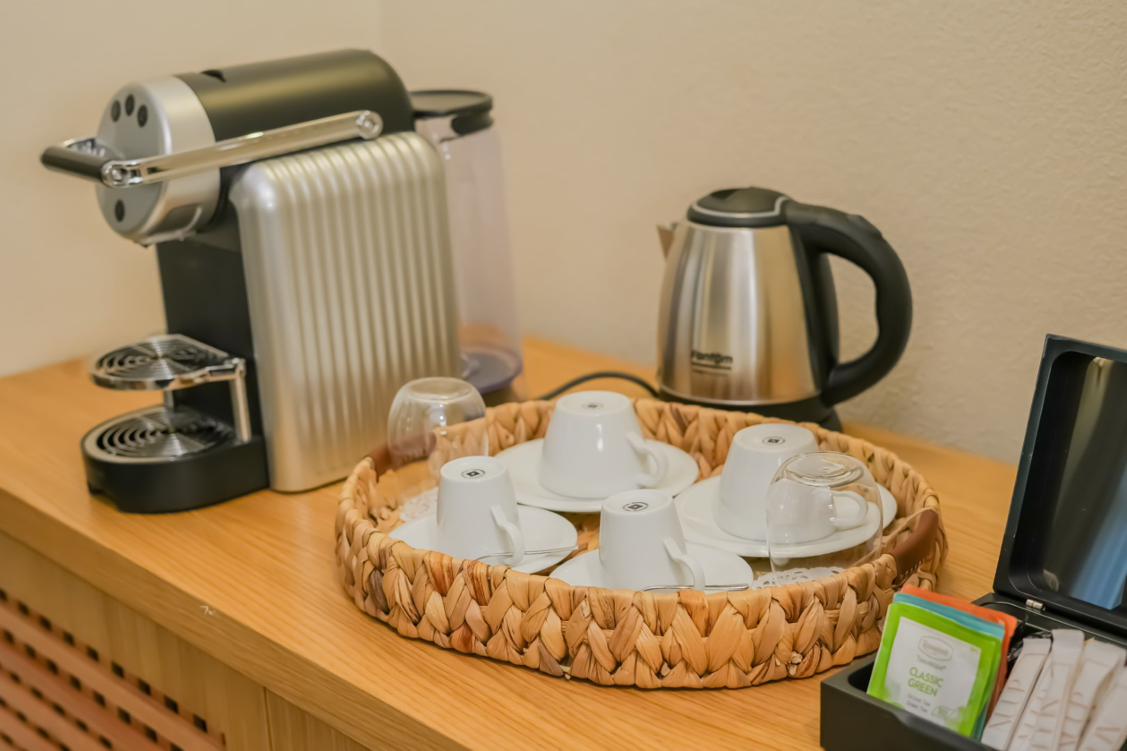 * Geniş çift kişilik yatak * Yastık menüsü * Su ısıtıcı ve Nespresso kahve makinesi *